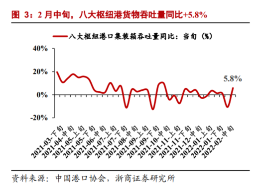 2月中旬八大枢纽港货物吞吐量同比增5.8%