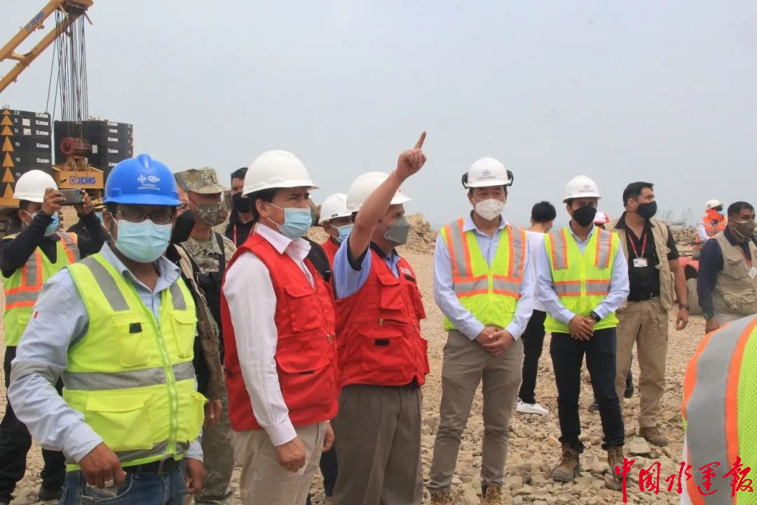 3月5日,秘鲁总统佩德罗·卡斯蒂略以及秘鲁交通通讯部长、秘鲁港务局总经理等一行考察中远海运港口秘鲁钱凯码头建设现场,对码头整体设计及施工进度进行了深入了解。