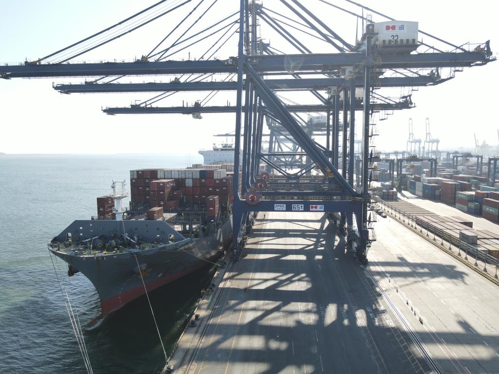 货轮在大连港装卸集装箱。(图片由辽宁港口集团提供)
