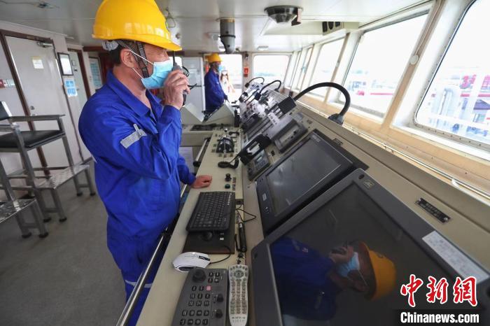 中燃32轮船长夏戟正在工作中。张亨伟 摄