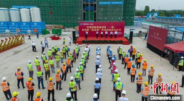 中新网合肥5月28日电 (赵强 邱玉梅)随着最后一方混凝土浇筑到位,合肥国际陆港项目(一期)28日正式封顶。此次封顶,标志着项目建设取得了阶段性进展,为下一步施工奠定了良好基础。