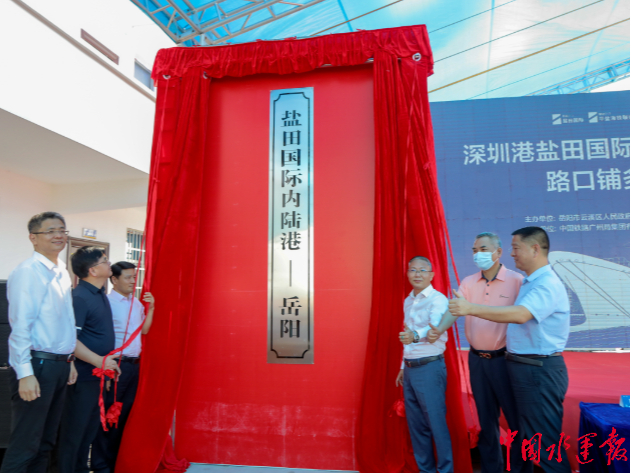 6月23日,盐田国际岳阳内陆港挂牌暨班列首发仪式、路口铺多式联运货场开通仪式在湖南岳阳举行。仪式上,首发班列搭载建材共24个标准集装箱驶出货运堆场,这批货物48小时内已运抵盐田国际并装上集装箱船付运东南亚。