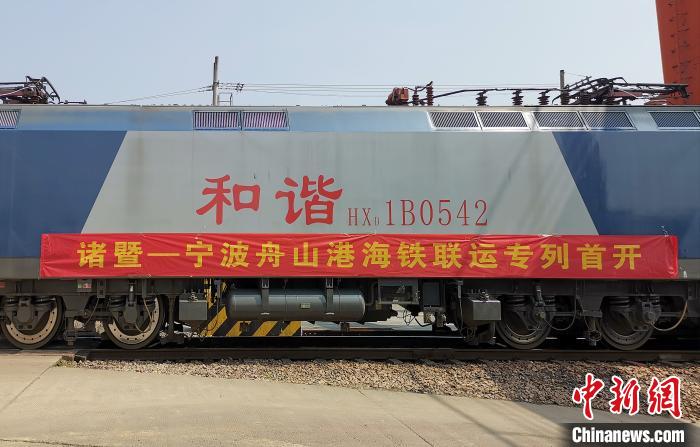中新网宁波3月11日电(记者 林波 通讯员 袁峰 郑颖 徐伦)3月11日12时,满载着49个40英尺集装箱的海铁联运专列从浙江省绍兴市诸暨东铁路货场发往宁波舟山港。这是诸暨至宁波舟山港线路开通后开行的首趟直达专列。
