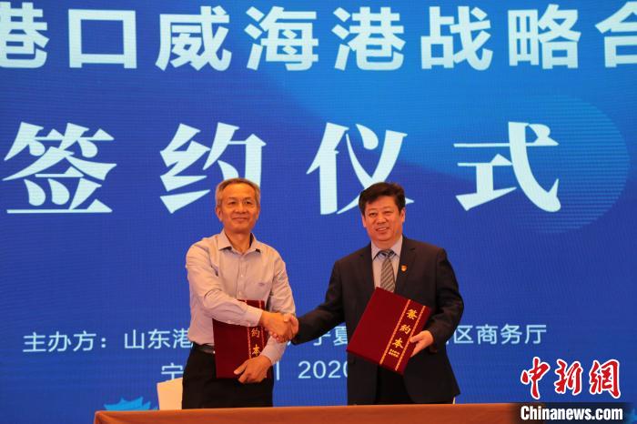 中新网威海6月9日电 (王娇妮 王丽萍)记者9日从山东港口威海港获悉,当日威海港与中卫市人民政府、银川市口岸办、银川中外运陆港物流公司分别签署战略合作协议,推动“宁夏—威海”海陆联运通道建设。
