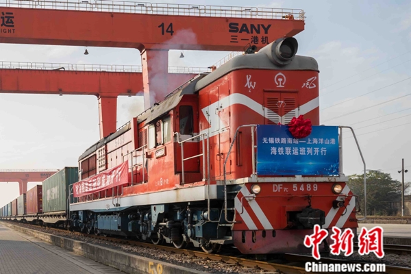 无锡至上海港海铁联运班列首发。李忱 摄