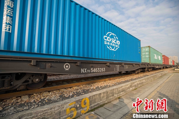 一列满载太阳能板、电动车等出口货物的集装箱货运班列从铁路无锡南站货场开出。李忱 摄