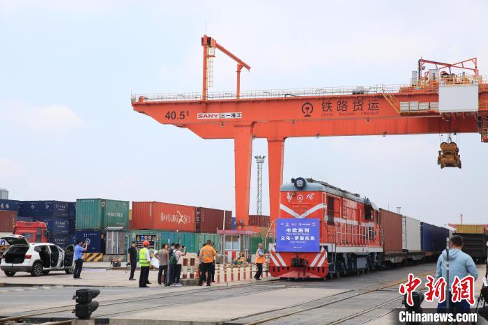 义乌首开至德国罗斯托克国际多式联运中欧班列。张静怡 摄