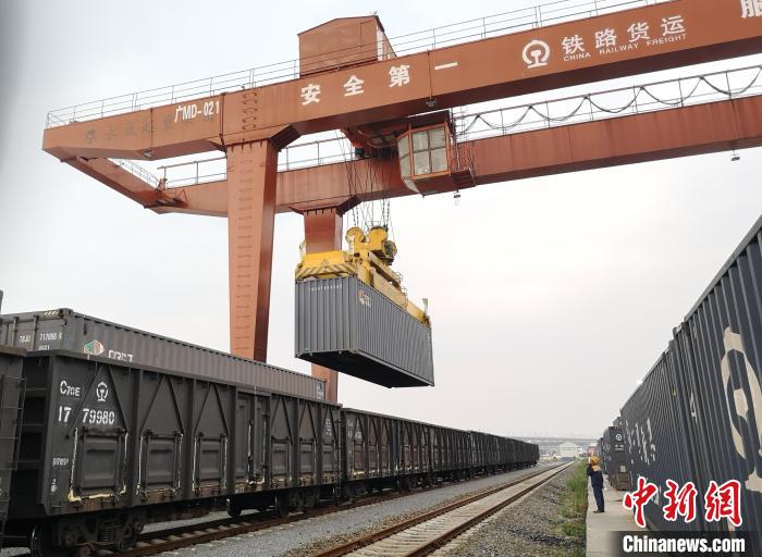 中越国际铁海联运班列进行吊装作业。广铁集团供图
