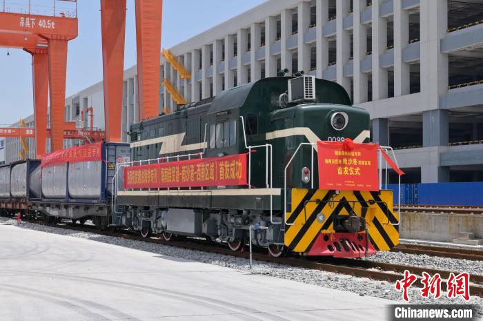 中新网广州5月18日电 (蔡敏婕 邹井棋)首趟“海南自贸港-南沙港-西南地区”粮油海铁联运专列18日从广州南沙港南站开出,标志着该海铁联运通道正式开通,串联起海南自贸港、粤港澳大湾区和成渝双城经济圈之间的物流供应链,进一步推动华南、西南以及大湾区协同联动发展。