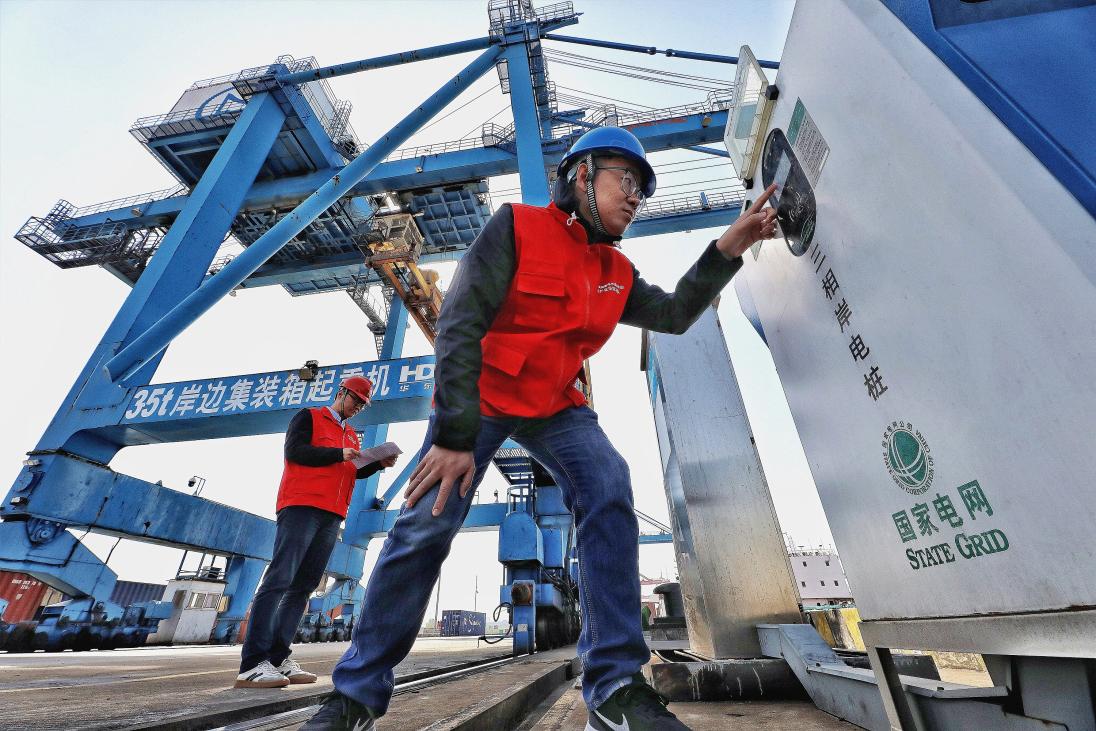 芜湖供电公司员工到芜湖港朱家桥外贸码头开展岸电桩巡视检查。何煜供图