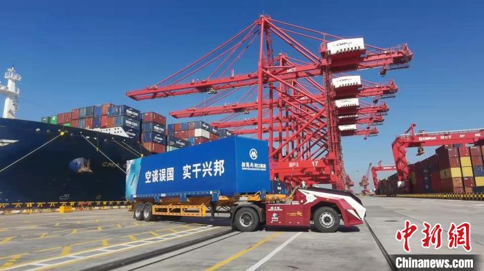 记者在现场看到,在开港仪式现场,位于智能操作中心的远控岸桥司机操作岸桥,从船上抓取了标记有“空谈误国,实干兴邦”的集装箱,精准地落在自动驾驶集卡上。自动驾驶集卡根据系统规划线路行驶到堆场,由自动化轨道吊完成堆场收箱作业。