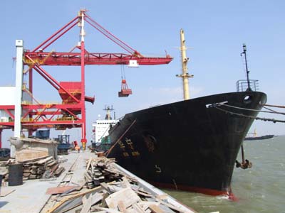 6月9日,位于南通长江之中横港沙外侧的5万吨级华能直输煤码头试靠船舶,2.5万吨级的“华宁”轮装载着2.2万吨煤炭成功地开始作业,南通江中沙洲岸线开发工作取得巨大进展。