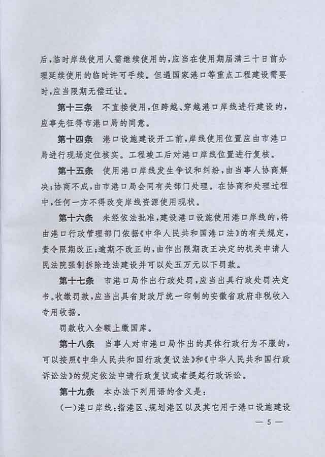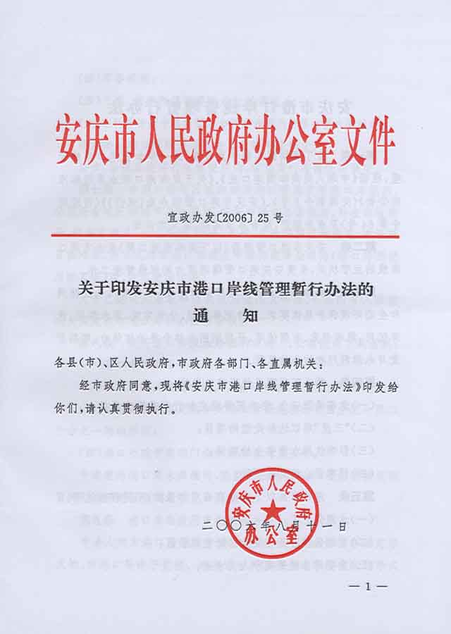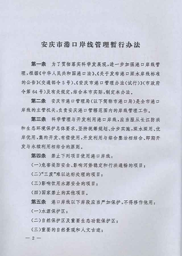 《安庆市港口岸线管理暂行办法》