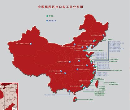 中国于1990年6月批准设立了第一个保税区——上海外高桥保税区后,又陆续设立了天津、深圳沙头角、深圳福田、大连、广州、厦门、张家港、海口、宁波、福州、青岛、汕头、珠海、盐田等共计15个保税区。这些保税区以发展国际贸易、出口加工、仓储和商品展示为主要功能,改善中国内投资、建设的软环境,加快了港口的发展。