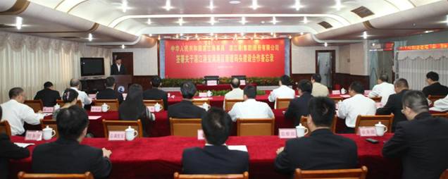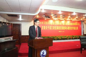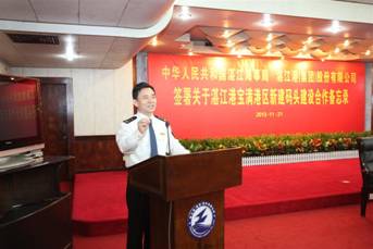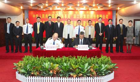 湛江市口岸局局长王小穗主持会议,湛江市委常委、常务副市长赵志辉出席并致辞。湛江海事局陈永忠副局长、湛江港集团林聪副总裁代表双方在《备忘录》上签字,广东海事局梁建伟局长,湛江市黄杰秘书长,湛江海事局王建华局长、吴启连副局长,湛江港集团张翼、刘恩怀、劳毅、杨文、周志权、黄李培、林苑琼、黄镇洲见证了签约。
