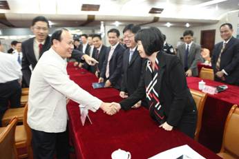 仪式后,湛江港的老领导梁建伟局长看望以前的老同事、老部下,并一一握手,场面温馨。