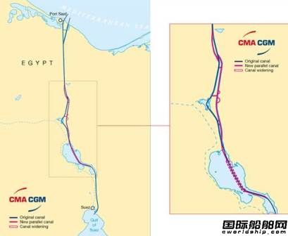 7月25日,埃及新建苏伊士运河于通过了第一艘集装箱船试航。随后有3艘集装箱船依次通过了新的运河。一艘为从沙特阿拉伯的驶往埃及塞得港的美国集装箱船,一艘为从新加坡驶往美国的丹麦集装箱船,另一艘为从沙特阿拉伯的驶往意大利的巴林集装箱船。