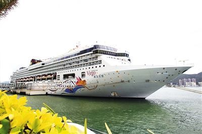 丽星邮轮旗下最大吨位的邮轮“处女星号”,靠泊在三亚凤凰岛国际邮轮港。海南日报记者 武威 摄