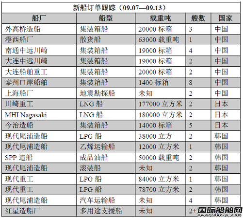 国际船舶网 据国际船舶网跟踪:2015年09月07日至09月13日,全球船厂共接获47+2艘新船订单。其中,中国船厂共获得22艘新船订单;日本船厂共获得9艘新船订单;韩国船厂共获得14艘新船订单;俄罗斯国家船厂也获得相关新船订单。