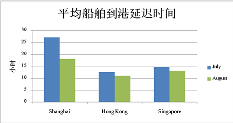 七、八月上海港、香港港和新加坡港的平均到港延迟时间