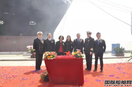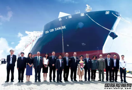 2014年6月25日,9200TEU首制船交付命名仪式在长兴岛举行。CMA CGM、中集、大连船舶重工集团、中国船舶重工集团、法国BV船级社等共同见证了这一伟大的时刻。中集融资租赁公司作为船东,融资租赁公司执行董事曾北华为首制船命名为“达飞·多瑙河”(CMA CGM DANUBE),它将满载业界的深情厚谊和殷切期望,驶向亚欧航线。