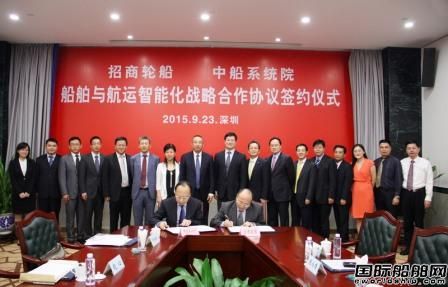 国际船舶网 9月23日,招商局能源运输股份有限公司(招商轮船)与中国船舶工业系统工程研究院(在深圳蛇口举行了《船舶与航运智能化战略合作协议》签约仪式,招商局集团副总经理邓仁杰、中国船舶工业集团副总经理吴永杰、招商轮船总经理谢春林出席签约仪式并发表讲话。招商局集团综合交通部部长张锐、信息技术总监吴沂;中船集团总经理助理许淼、中船系统院院长张宏军参加并见证仪式签署。招商轮船副总经理黄涌泉、中船系统院总工程师李开升分别代表双方签署协议。招商轮船副总经理闫武山、信息技术部总经理丁军、香港明华副总经理张士伟等参加并见证协议签署。