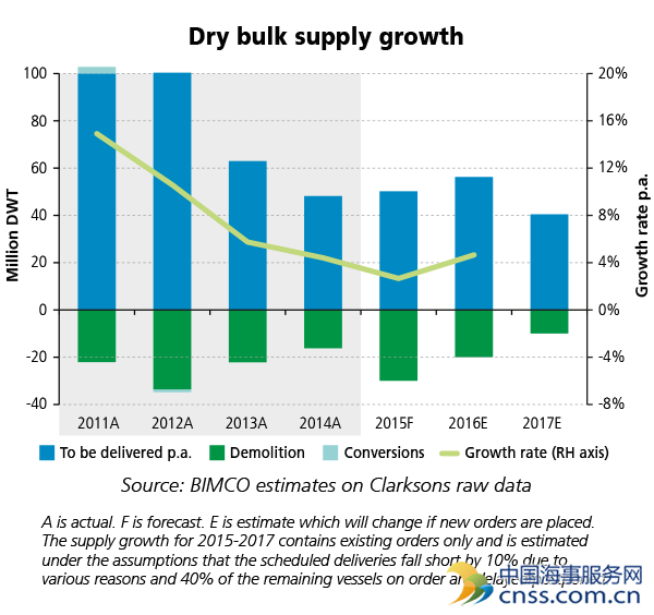 因此,BIMCO得出结论说,在9月至11月这几个月中,新船供应方面将保持一个低迷慢速的状态,这种状态会持续到今年年底。而逐渐恶化的干散货需求市场则有望在未来的几个月得到改善进入旺季。在未来的几个月中,大宗商品,煤炭,铁矿石的市场需求量都将上升,给船东和运营商带来更多的航行机会。总体上看,尽管运费不会有明显的改善,但好的需求条件能够保持运费的基本平衡。