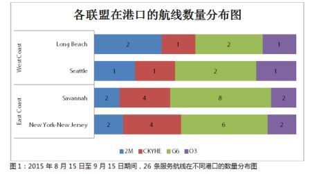提供全球船运管理软件方案的货讯通10月发布了最新一期月报,其中重点比较了四大联盟在美国航线上提供的服务航线绩效,并主要对西岸的长滩和西雅图港、东岸的萨凡纳和纽约—新泽西港这4个主要的美国港口进行了深入研究。