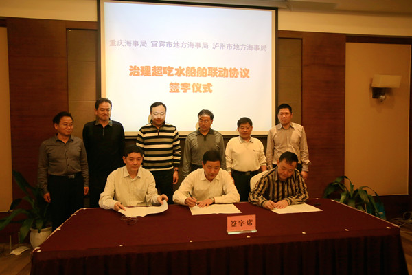 会上,宜宾市地方海事局、泸州市地方海事局、宜昌海事局、三峡海事局分别就砂石开采活动海事监管、客渡船安全监管、船舶安全检查工作、景区客渡船安全监管等海事工作亮点进行了经验交流,重庆海事局也就砂石船船员安全警示教育进行了交流,并在会上展示了制作完成的“水上交通事故警示教育片——砂石船舶篇”。与会代表结合各单位发言,就长江干线水上交通安全监管的重难点问题进行了热烈讨论。随后,在长江海事局、宜昌海事局、三峡海事局领导的见证下,重庆海事局与宜宾市地方海事局、泸州市地方海事局共同签订了“治理超吃水船舶联动协议”。该联动协议的签署,标志着长江上游枯水期船舶超吃水整治由以前的“单打独斗”进入到全新的“联防联控”阶段,对促进长江上游安全形势持续稳定具有重要意义。