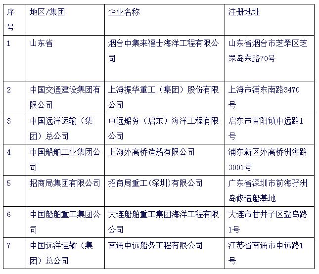 让业界翘首以望的海工企业“白名单”终于面世。据工业和信息化部消息,按照《海洋工程装备(平台类)行业规范条件》,根据企业申报,经省级船舶工业行业主管部门和中央企业集团(公司)初审,中国国际工程咨询公司和中国船级社组织专家评审和现场核查,符合《海洋工程装备(平台类)行业规范条件》(第一批)的企业共8家,具体为:烟台中集来福士海洋工程有限公司、中国交通建设集团有限公司、上海振华重工(集团)股份有限公司、中国远洋运输(集团)总公司、中远船务(启东)海洋工程有限公司、中国船舶工业集团公司、上海外高桥造船有限公司、招商局集团有限公司、招商局重工(深圳)有限公司、中国船舶重工集团公司、大连船舶重工集团海洋工程有限公司、中国远洋运输(集团)总公司和南通中远船务工程有限公司(见表)。公示期为11月6—30日,如果不出意外,以上企业将正式入围首批海工企业“白名单”。