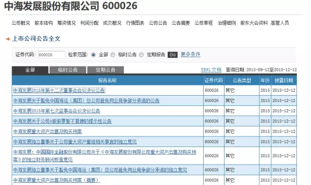 中海发展:公司A股股票自2015年12月14日起暂不复牌,待上海证券交易所审核并发布修订公告后另行通知复牌时间;H股股票自2015年12月14日(星期一)上午九时复牌。