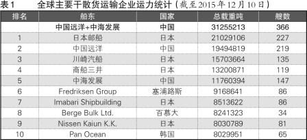 根据克拉克森的统计(见表1),截至12月10日,中国远洋拥有干散货运力19494819DWT,仅次于日本邮船,排名全球第二;中海发展拥有干散货运力11760394DWT,排名第五。双方整合后的运力将超过3100万DWT,成为全球第一,规模超出排名第二近50%。