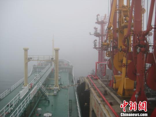 船舶停航在雾气笼罩的大亚湾石化码头 李涛 摄