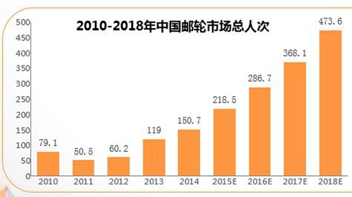 2015年中国邮轮市场预计将达到218.5万人次,收入将达45.3亿元。一方面,中国兴起的休闲度假的生活方式与邮轮出行的文化理念正相契合;另一方面,邮轮码头建设的兴起、中韩自贸区,放宽签证等利好政策提升中国游客的热情。