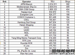 贸易风 Alphaliner最新运力数据显示,截止2016年3月7日,全球班轮公司运力100强中排名前三的分别是马士基航运、地中海航运和达飞轮船。第四名到第十名依次为:长荣海运、赫伯罗特、中远集运、中海集运、汉堡南美、韩进海运、商船三井。