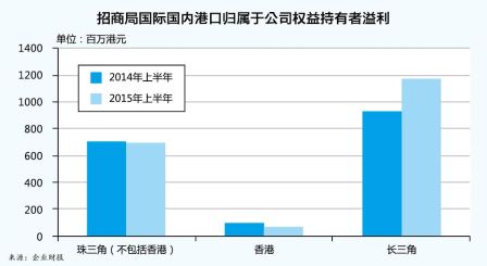 招商局国际去年上半年财报坦言:总体而言,港口业务仍然持续为集团带来稳定现金收益。这可以从布局在中国的港口所取得的归属于公司权益持有者溢利可见(见图),其中上港集团更是招商局国际利润的重要来源。据2014年年报,招商局国际2014年自上港集团收取的股息达8.92亿港元,2013年为9.38亿港元。