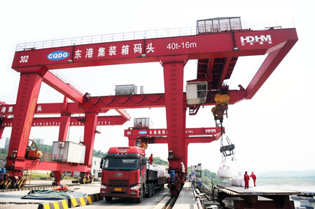 南岸网 日前获悉,拥有最新安检设施和生产信息化管理系统的重载汽车滚装码头,在东港码头正式投运。据悉,该码头位于我区广阳镇,目前年通过能力为6万辆,今后通过技改及二期工程,可达20万辆以上,将带动重庆南岸片区及周边省市与华东各地区的物资流通,减少各生产制造企业和贸易企业的流通成本,更好地服务和支撑地方经济发展。