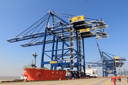 中国航贸网 从宁波大榭招商国际码头获悉,2016年5月12日,该公司向上海振华重工股份有限公司(ZPMC)最新订购的2台岸边集装箱起重机(简称岸桥)由“振华31号”运输轮顺利靠泊在宁波大榭招商国际码头,至此,该公司岸桥增至16台。