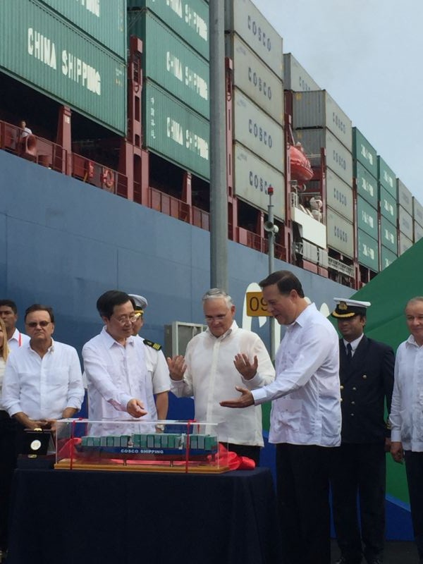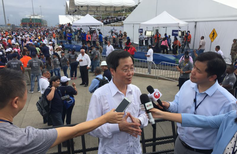 许立荣在仪式现场接受记者采访时说,扩建启用不仅是巴拿马运河自身发展的大事,更是国际航运业发展的里程碑。对获选成为巴拿马运河扩建后通过的首艘船舶感到荣幸。中远海运目前是全球综合运力最大的航运企业,是巴拿马运河的重要客户。运河拓宽后,中远海运拥有的众多新巴拿马型船只,包括大型集装箱船、散货船和油轮等,将可以通过巴拿马运河,为全球客户提供更加具有竞争力的服务。同时,中远海运也是巴拿马运河的重要建设者,中远海运旗下的中远航运船舶承担了扩建工程中价值高、难度大的船闸运输,彰显了中远海运在世界特种货物运输领域强大的综合实力。许立荣表示,作为植根巴拿马多年的航运企业,未来中远海运还将继续积极推动中国与巴拿马之间的经贸合作,并作为经济全球化的参与者、助力者,积极打造为全球经贸服务的海洋运输通道和物流通道,成为中国经济走向全球的重要支撑,推动全球贸易的快速发展。