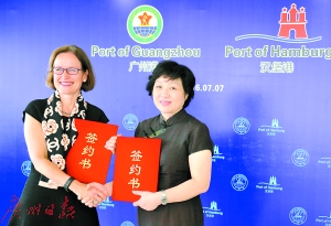 7月7日,广州与德国汉堡港正式签署了友好港协议书,缔结为友好港,开启了广州港与德国港口交流合作的新纪元。