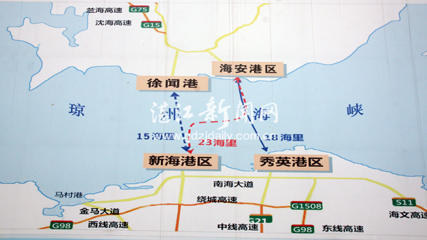 为了适应海口市的发展需要,通往海南的海上货运运输,将从原海口新港和秀英港两大港区移向新建成的海口新海港区。据介绍,海口新海港区距离徐闻海安港区23海里,而距离规划建设的徐闻港仅有15海里。