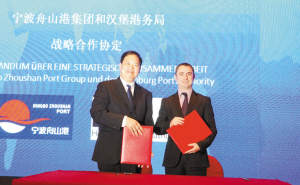 东南商报 7月13日,海上丝绸之路沿线34个国家与地区的近百家港口单位及交通主管部门、300多位中外嘉宾云集宁波,参加第二届海丝港口国际合作论坛。会上,宁波舟山港与德国汉堡港务局和威廉港集装箱码头亚德港-营销有限公司签署了合作协议。这也是宁波舟山港与欧洲港口的首度携手。