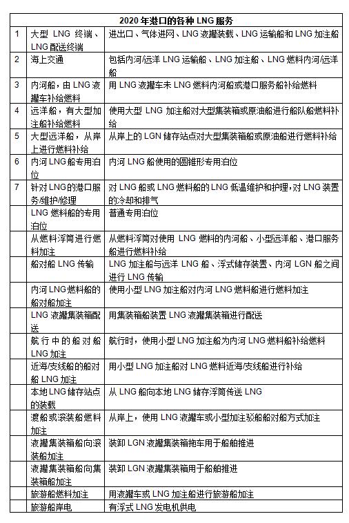 据一份资料显示,鹿特丹港对2020年可能开展的各种LNG服务预测如下: