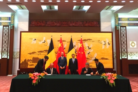 当天在双方国家领导人的见证下,中远海运还与比利时泽布鲁日港(Port of Zeebrugge)、中国五矿集团签署了合作备忘录。三方共同发起“丝绸之路”运营中心,共同推进比利时泽布鲁日自贸区“丝绸之路”服务平台暨会展中心项目。中远海运董事总经理万敏、中国五矿集团副总经理兼中冶集团总经理张兆祥、比利时泽布鲁日港主席Joachim Coens分别代表三方在合作备忘录上签字。根据合作备忘录,泽布鲁日港将提供一系列优惠与灵活政策,与中远海运、五矿集团共同建设泽布鲁日自贸区“丝绸之路”运营中心,为全球客户特别是中国出口企业提供集自由贸易和海外保税仓、国际贸易和展示、电子商务、国际金融和结算为一体的、领先的跨境贸易综合服务,从而为推动中欧贸易往来提供便利条件。