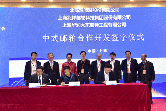 本次研讨会首次明确提出了“中式豪华邮轮”的概念,传达出中国邮轮产业最具影响力的消息:“中国民营企业正在联合其他所有制企业抱团自主开发中式豪华邮轮的建造,会上北部湾旅游股份有限公司、上海兆祥邮轮科技集团股份有限公司、上海华润大东船务工程有限公司联合签署了《中式豪华邮轮开发合作协议》;三家企业携手牵头开发中式豪华邮轮”,意味着中式豪华邮轮的自主开发建造已提到了议事日程,将成为邮轮产业各界人士持续关注的热点。