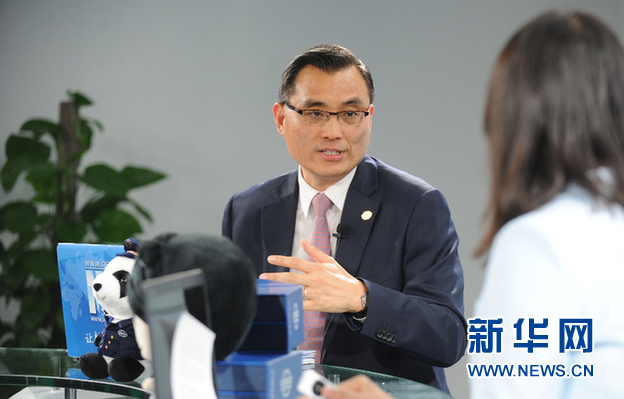 图为,中远海运集团副总经理俞曾港做客新华访谈。