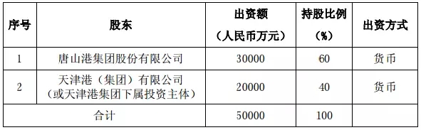 津唐国际集装箱码头有限公司注册资金5亿人民币。根据此前发布公告显示,唐山港集团和天津港集团出资比例分别为60%和40%。