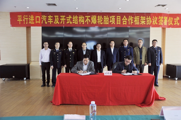 2017年1月4日,新年伊始,钦州保税港区招商引资迎来开门红,分别与广西光耀供应链管理有限公司、深圳市道尔轮胎科技有限公司签署平行进口汽车和特种轮胎加工贸易项目合作框架协议。3000台/年进口汽车项目和计划总投资45亿元的开式结构不爆轮胎项目正式落户钦州保税港区。