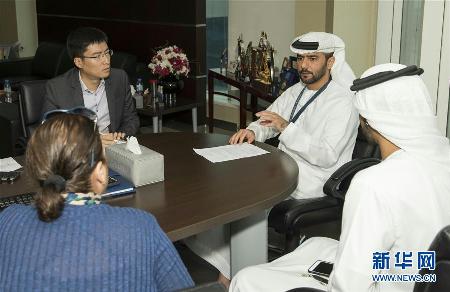 新华社 2月26日,阿联酋阿布扎比港务局首席执行官穆罕默德?夏米西(右上)在办公室接受新华社记者专访。他表示,中国提出的“一带一路”倡议是正确而积极的创举,有助于加强全球主要港口的互联互通,实现沿线国家的共同发展。