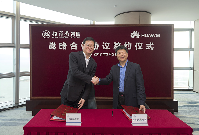 中国航贸网 3月21日,招商局集团与华为技术有限公司签署战略合作协议,正式建立战略合作关系。招商公路-华为联合创新中心揭牌仪式同时举行。招商局集团副总经理邓仁杰与华为技术公司轮值 CEO 郭平出席签约暨揭牌仪式。